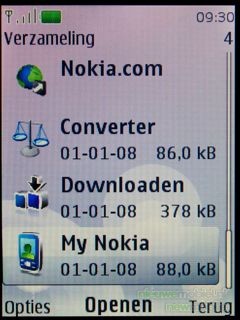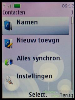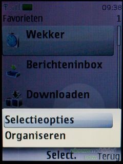 Aan de opbouw is niets bijzonders op te merken. De indeling en bediening van het menu is zeer logisch; het werkt eenvoudig en goed. De volgorde van de iconen kan door de gebruiker gewijzigd worden. Wil je bijvoorbeeld de ‘contacten’ bovenaan de lijst hebben, met daaronder ‘berichten’, dan is dat mogelijk. Bladeren door de verschillende menu-onderdelen gaat door middel van de bedieningsknop (door deze naar boven, onder, links of rechts te bewegen).