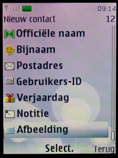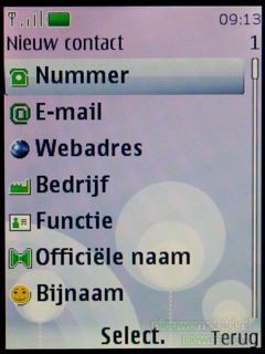 Contacten kunnen opgeslagen worden in de telefoon door in het menu te kiezen voor de optie ‘contacten’ en vervolgens voor ‘nieuwe toevoegen’. Er kunnen naast een voor- en achternaam en natuurlijk een mobiel nummer verschillende gegevens aan een contactpersoon worden toegevoegd zoals een thuisnummer, e-mailadres en een afbeelding. Gegevens kunnen opgeslagen worden op de SIM-kaart, het geheugen van de telefoon of allebei. In het geheugen van de telefoon kunnen maximaal 100 personen worden opgeslagen.