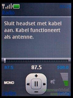 De MP3 speler is erg simpel. Nummers kunnen na elkaar op rij of in een willekeurige volgorde afgespeeld worden maar verder zijn er geen bijzondere opties aan toegevoegd. Misschien komt dat ook wel omdat er slechts 4 MB aan ruimte is om muziek in op te slaan. Er is geen mogelijkheid om geheugen uit te breiden. Om radio te kunnen luisteren moet de headset aan de telefoon worden vastgemaakt; de headset fungeert dan als antenne. Dit wil overigens niet zeggen dat het geluid alleen via de headset te beluisteren is: de radio kan ook op de luidspreker staan.