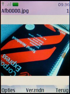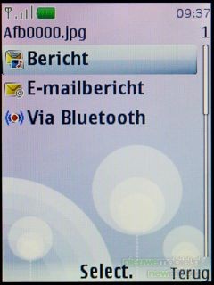 De gemaakte afbeeldingen en video’s worden opgeslagen in de galerij. Daar kunnen ze stuk voor stuk bekeken worden. In het menu van de camera zelf is een optie toegevoegd om alle afbeeldingen of video’s in een diareeks te openen (kies voor de optie ‘open in volgorde).’ De afbeeldingen en video’s kunnen verzonden worden via een bericht, een e-mailbericht of de Bluetooth-functie.