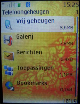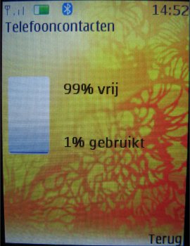 Standaard heeft het toestel een dynamisch geheugen van rond de 12.5 MB en dat is ronduit weinig. MP3 bestanden opslaan op het toestel heeft eigenlijk geen zin. Misschien eentje die men wil instellen als beltoon en dan houdt men net genoeg over voor een aantal foto's en video's. Het toestel moet het niet hebben van het interne geheugen.