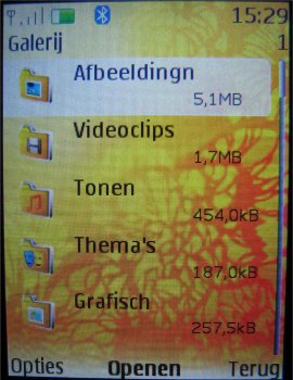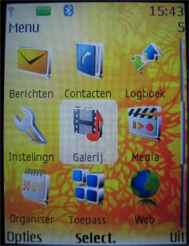 Via de galerij bekijkt men alle aanwezig data. Afbeeldingen, video's, MP3 bestanden en screensavers kunnen allemaal bekeken en beluisterd worden. Ook kan de afbeeldingseditor worden gestart en kunnen afbeeldingen worden aangepast. Het is mogelijk tekst, een kader, een pictogram of afbeeldingen toe te voegen. Ook kan de afbeelding worden bijgesneden zodat deze gebruikt kan worden in het telefoonboek of bijvoorbeeld een MMS bericht.