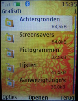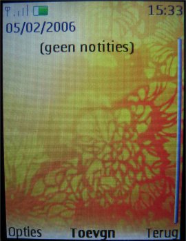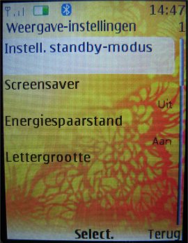 Als schermbeveiliging vind men in het toestel een groot aantal achtergronden en screensavers, die allemaal in stijl zijn met wat het toestel moet uitdragen. Ook kan men zelf een afbeelding of screensaver kiezen en dat is netjes.