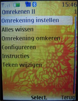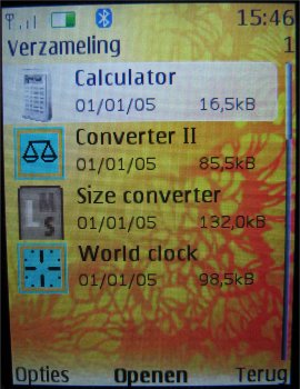 In het toestel zijn een aantal programma's niet standaard opgenomen in het menu, maar extra geïnstalleerd als JAVA programma onder het onderdeel verzameling. Hieronder zijn een calculator met wisselkoers optie, uitgebreide converter, afmetingen converter en wereldklok opgenomen.