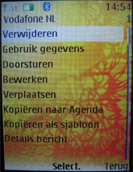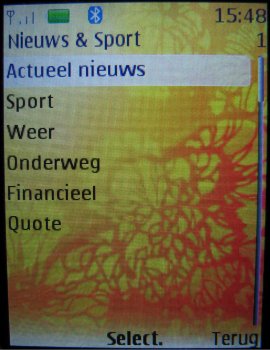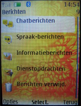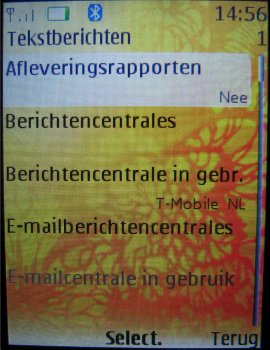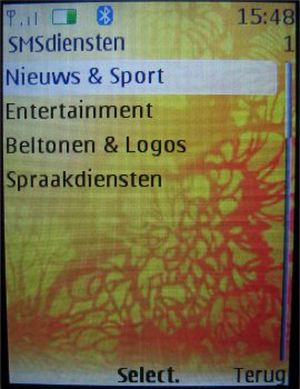 Als laatste komt het onderdeel SMS diensten aanbod in het toestel. Dit onderdeel bekend van andere toestellen is er speciaal voor gebruikers van providers die diverse diensten en hulpinformatie aanbieden via SMS berichten. Het onderdeel wordt automatisch toegevoegd aan het menu van het toestel wanneer de SIM kaart de ondersteuning voor deze functie heeft.