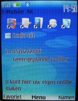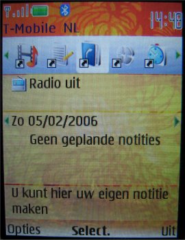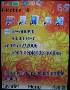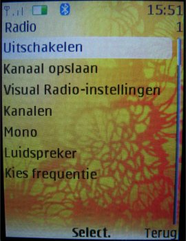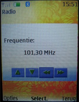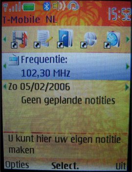 Wat uiteraard een heel fijne functie is, is de stereo FM radio, want nu kan men werkelijk overal zijn favoriete muziek bij de hand hebben. 20 zenders zijn voor te programmeren en men kan er een eigen naam aan geven. Het geluid komt via de headset kraakhelder door en zelfs op de speakerstand klinkt dat nog behoorlijk goed. Wel is weer een nadeel dat als men de radio op speakerstand wil zetten, de headset er toch weer aan vast moet.