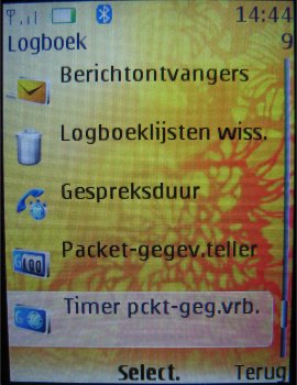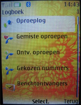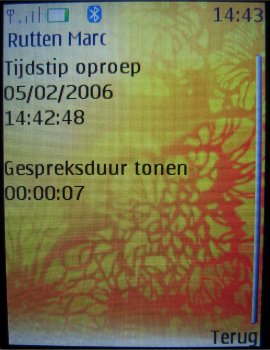 Gespreksinfo kan via het menu opgevraagd worden en is net zo uitgevoerd als elk ander Series 40 toestel. Alle opties zijn mogelijk als het bekijken van ingekomen, gemiste en uitgaande gesprekken, het wissen van de gesprekstellers en het opvragen van de GPRS tellers.