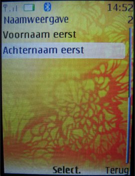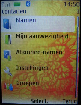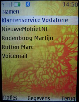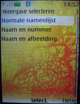 De contactpersonen worden in een lijst weergeven die men kan doorscrollen. Er zijn in totaal drie weergave opties mogelijk: Naam en afbeelding, Normale namenlijst of Naam en nummer. De keuze van de gebruiker op welke manier men dit indeelt.