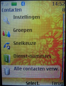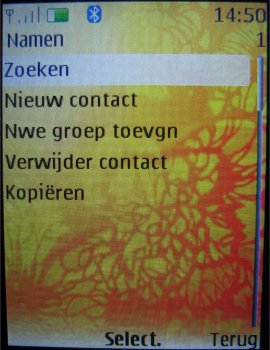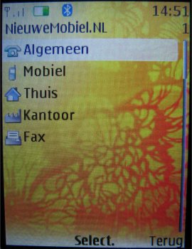 Het telefoonboek heeft veel functies en kan men bereiken door bij het hoofdscherm op "Contacten" te drukken of door op de centrale toets te drukken en dan menu-item twee te kiezen. Het telefoonboek is eenvoudig opgemaakt en geeft als eerste een lijst weer met een aantal opties die men kan gebruiken om contactpersonen op te zoeken, toe te voegen of bijvoorbeeld te verwijderen.