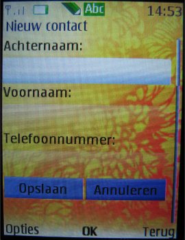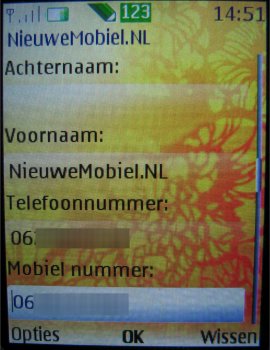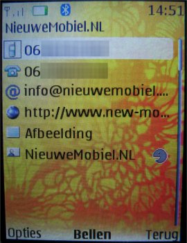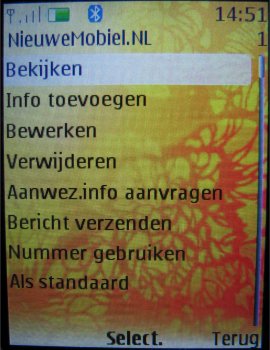 Als men een contactpersoon toevoegt kan men aardig wat extra data invoeren: Voornaam, Achternaam, Telefoonnummer, Emailadres, Adresgegevens en Notities. De contactpersonen kunnen ook worden ingedeeld per groep en het is mogelijk om een foto of beltoon per bepaalde groep of persoon (alleen foto) in te stellen. Deze groepsafbeeldingen kunnen nu ook afbeeldingen zijn gemaakt met de camera van het toestel.
