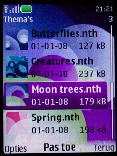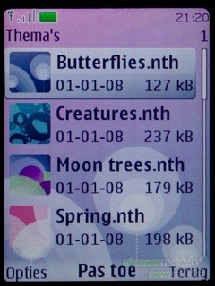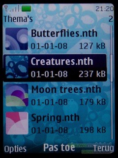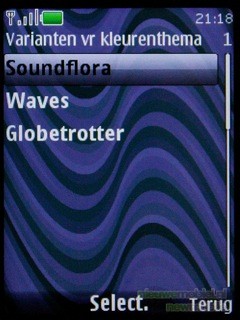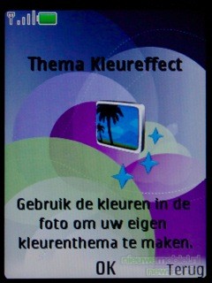 Een in het oog springende functie van de telefoon is de mogelijkheid om een eigen kleurenthema aan te maken voor het menu. Standaard bevat de telefoon vier thema’s. De vier thema’s kunnen aangevuld worden met nieuwe varianten door kleuren uit een zelfgemaakte foto te gebruiken als kleurenpalet. Hierdoor ontstaat weer een totaal nieuwe uitstraling van het menu. Deze bijzondere optie werkt erg goed; bonte vrolijke kleuren of effen donkere kleuren, werkelijk alles is mogelijk. Een leuk detail is dat het (gekleurde) licht dat zich rondom de middelste knop van het toestel bevindt zich ook aanpast aan het nieuwe thema.