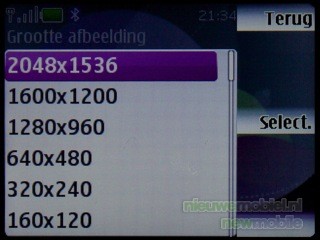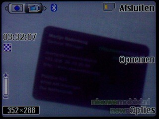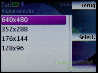 De videoresolutie kan ingesteld worden op 640 x 480, 352 x 288, 176 x 144 of 128 x 96.