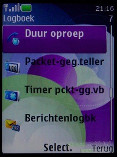 In het logboek van de telefoon, dat is te bereiken via het hoofdmenu, worden alle gemiste, ontvangen en gekozen oproepen weergegeven met daarbij de duur van die oproepen. Ook is het mogelijk om gegevens op te vragen over ontvangers van berichten die verstuurd zijn en het aantal gegevens dat verzonden is. Het logboek is te resetten, zowel per onderdeel als in zijn geheel.