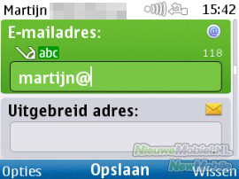Als het beginscherm verschijnt kan ook een desgewenst nummer ingetoetst worden op het QWERTY toetsenbord. Dit nummer kan worden opgeslagen, kan toegevoegd worden aan een contact, of een bericht kan worden verstuurd.