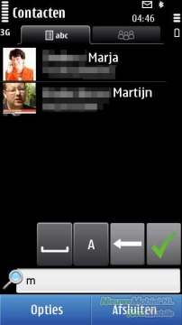 Het geheugen van de Nokia C6-01 beslaat 2GB en biedt dus genoeg ruimte voor een overvloed aan contacten. Om een bepaald contact te bereiken, kun je er snel naartoe scrollen. Zo kom je echter niet altijd precies bij het juiste contact uit: naar onze mening is het makkelijker om de eerste letter van het bedoelde contact in te typen. Het toestel geeft dan zelf aanvulopties weer. Bij de contacten kunnen ontzettend veel gegevens opgeslagen worden, van de meer standaard toevoegingen als foto, adres en e-mailadres, tot de naam van de partner en kinderen en de gegevens van bijna alle denkbare sociale netwerken.