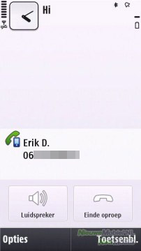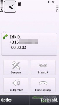 Tijdens het bellen zijn op het scherm 4 snelkoppelingen weergegeven en onder ‘opties’ zijn nog meer mogelijkheden te vinden. Zo kan de luidspreker worden geactiveerd, de microfoon uitgeschakeld worden, of een gesprek in de wacht worden gezet.