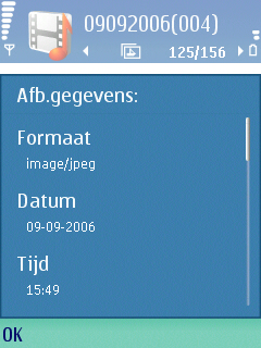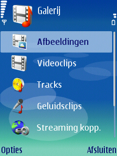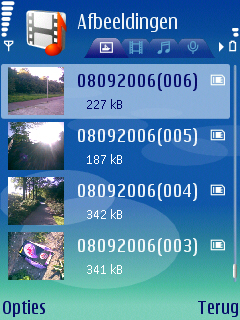 Wanneer de afbeeldingen gemaakt zijn door de camera kunnen ze opgevraagd worden via de Galerij icoon in het menu. Hier wordt geen scheiding meer gemaakt tussen de data op de geheugenkaart en de data op de telefoon zelf zoals dat bekend is uit andere Series 60 modellen. Onder de map afbeeldingen vindt men de gemaakte afbeeldingen in een lijstweergave. Dit is de enige weergave die mogelijk is.