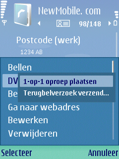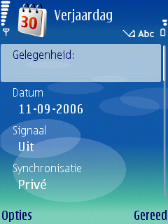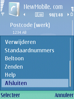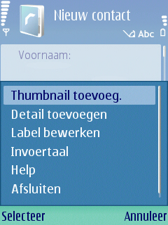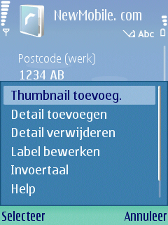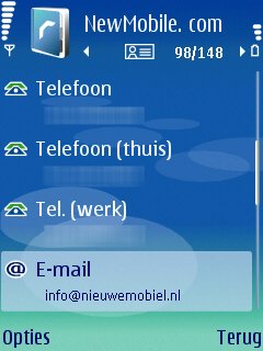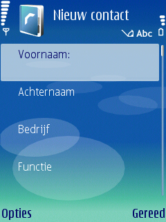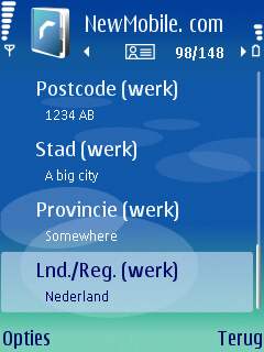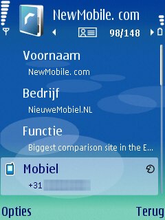 Per contactpersoon kan men standaard een redelijk aantal punten met data toevoegen: Voornaam, Achternaam, Bedrijf, Functie, Telefoonnummer, Mobielnummer, Faxnummer, Emailadres. Mocht men dan meer data willen toevoegen dan kan dit via “gegeven toevoegen” en kan men diverse extra’s gegevens toevoegen zoals: Telefoonnummers, Mobiele nummers, Fax nummers, Adressen, Emailadressen, URL’s, de verjaardag van een contactpersoon en een notitie. Het is nog niet zo uitgebreid als de Windows Mobile toestel, maar voor een smartphone is het niet anders dan zeer netjes. Deze optie is exact hetzelfde gebleven met andere Series 60 toestellen.