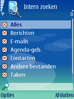 Standaard aanwezig en enorm handig; de nieuwe zoekfunctie. Deze biedt gebruiker de optie om te zoeken op bepaalde contactpersonen, berichten of andere data op het toestel. Enorm handig voor als men op zoek is naar alle informatie en data van een bepaald onderwerp. De applicatie is simpel, werkt snel en is een uitbreiding van het pakket aan programma’s dat Nokia meelevert. De zoekapplicatie zou standaard op elke E-series meegeleverd moeten worden.