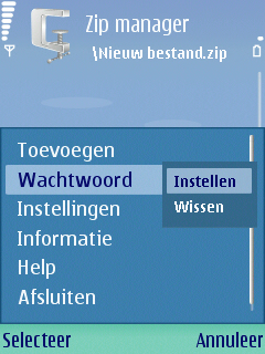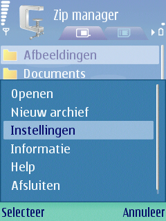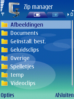 Met het programma ZIP manager kan men ZIP bestanden beheren. Men kan bestanden opslaan in een ZIP bestand of een bestaand ZIP bestand openen en bekijken.