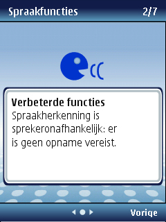 De voice dailing werkt met een vooraf ingestelde invoer. Dit werkt redelijk, al geeft het toestel nog een vage reactie wanneer de juiste contactpersoon niet gevonden wordt. Het toestel spreekt dan iets terug wat niet te verstaan is. Gelijkwaardig aan de opleesfunctie bij een inkomend gesprek.