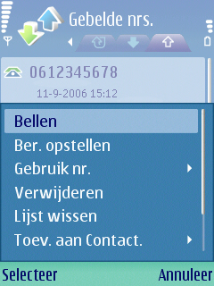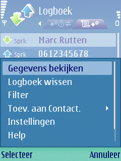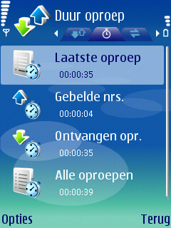 Het gespreksoverzicht is op te vragen via de opneemknop en bevat vier tabbladen, die qua duidelijkheid niks te wensen over laten. De gegevens zijn simpel op te vragen via de tabbladen en men kan alles vinden wat gerelateerd is aan de gemaakte gesprekken. In het menu onder de icoon logboek vindt men nog meer informatie. Hier worden ook nog andere punten weergeven zoals de duur van de diverse oproepen, de kosten van deze oproepen (alleen mogelijk wanneer de kosten voor 1 minuut zijn ingesteld) en de GPRS gegevenssteller. Alles is simpel en doeltreffend op één punt te vinden en zo hoort het. Het instellen van de timers/tellers is vrij simpel te doen in het logboek menu. Men kan aangeven hoe lang de tellers bijgehouden moeten worden, hoeveel een gesprek mag kosten en welke eenheden gebruikt moeten worden. De tellers op nul zetten is zo gepiept via het menu van het logboek. De manier waarop dit alles werkt is gelijk aan andere Series 60 toestellen.