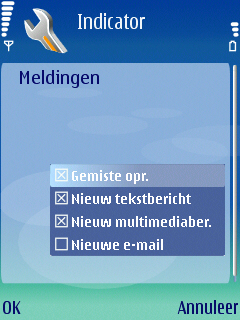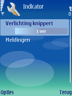 Zoals al aangegeven heeft de E50 een speciale indicator achter de 5-richtings bedieningstoets die oplicht wanneer een ingekomen bericht of gemiste oproep wordt getoond op het scherm. Deze indicator kan men uitschakelen, maar het is ook mogelijk een aantal instellingen aan te passen.