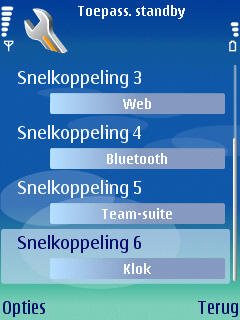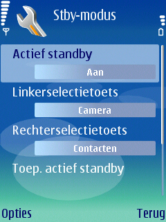 Wat de gebruiker verder op het beginscherm ziet is gelijk gebleven aan de Nokia N70, namelijk de notities voor de provider, de tijd, de Bluetooth, batterij, berichten en het ontvangst van het belsignaal. Aan de onderzijde van het scherm zijn twee links zichtbaar die door beide soft-keys gebruikt kunnen worden. Het gaat hier standaard om twee standaard links, maar deze kunnen zelf naar eigen wens ingesteld worden via het instellingenmenu. Naast deze instellingen kan men de centrale 5-richtings bedieningstoets in de vijf richtingen ook een functie meegeven. Dit werkt alleen wanneer het homescreen niet ingeschakeld is.