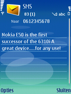 Het invoeren van de tekst via het standaard toetsenbord gaat snel en werkt lekker al werken de kleine toetsen wel wat tegen. Alle verdere instellingen op deze Nokia zijn hetzelfde als bij ander Nokia of BenQ-Mobile toestellen. Het “#” dient voor de bediening van de soort invoermodus, de “c” toets is voor het verwijderen van de tekst en de “ABC” toets dient voor het selecteren van tekst of het wijzigen van de mogelijkheden die er zijn voor het invoeren van tekst in het toestel. Tijdens het invoeren zijn er een aantal regels te zien waarop de tekens worden geplaatst. Heeft men het bericht af en hoeft het nog niet verstuurd te worden dan kan het worden opgeslagen in de ontwerpen map. Is het bericht eindelijk verzonden dan komt het in de verzonden map geplaatst. Versturen van een foto of een andere multimedia bestand is gewoon mogelijk via het berichtenprogramma, maar ook via het fotoalbum of RealOne programma. Ontvangen bestanden kunnen bekeken worden door middel van deze programma’s.