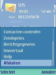 Hieronder vindt men een voorbeeld van het voorlezen van een SMS bericht met de volgende tekst: