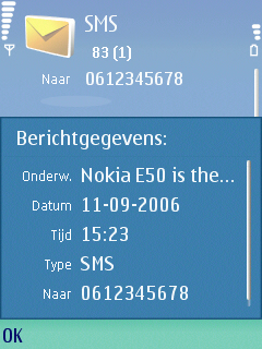 Alle mogelijkheden op het gebied van messaging zijn aan boord van dit toestel. MMS, SMS, picture messaging, email via POP3, SMTP en IMAP4 servers zijn aanwezig. Men kan de diverse berichten opvragen via het berichten icoon in het menu en daar vind men een aantal mappen in een lijstweergave. Men kan snel een bericht invoeren of de inbox bekijken waarin alle soorten berichten op de email berichten na samen zichtbaar zijn. Nadeel is daarvan is dat men dan alle berichten door elkaar heeft staan. Een goede manier was geweest berichtregels te introduceren waardoor de diverse berichten in bepaalde zelf te definiëren mappen terecht zouden komen. Helaas is deze functie nog niet opgenomen in de Series 60 interface.