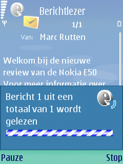 De applicatie is nog niet geïntegreerd in het Berichten onderdeel van het toestel. Een losse applicatie kan men opstarten en deze zal wanneer er tekstberichten in de inbox aanwezig zijn deze uitspreken. Men luistert dus naar de gesproken stem Ingrid die het SMS bericht voordraagt. Dit werkt erg goed en de kwaliteit is zeker niet slecht. De woordenschat van de stem is soms lachwekkend, maar over het geheel gezien is de nieuwe berichtenlezer zeker een toevoeging aan de huidige reeks met toestelspecificaties. Samen met de gesproken hulp is dit een welkome aanvulling.