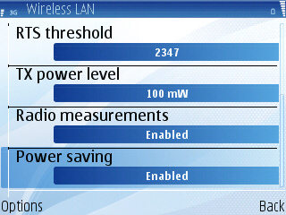 Het instellen van een WLAN verbinding is wat omslachtig. In de interface van het toestel zijn drie plaatsen waar de gebruiker iets over een WLAN verbinding kan terug vinden. Dit zijn de Connection manager onder connectiviteit, waar een zoektocht naar netwerken gedaan kan worden en de twee plekken in het onderdeel Instellingen. Daar stelt men de WLAN verbinding onderdelen in als het netwerk access point en de diverse beveiligingsinstellingen en netwerknamen. Eenvoudig zoeken op de naam van het netwerk is er helaas niet bij en het geheel blijft wat omslachtig. Windows Mobile en Sony Ericsson (in de P990i) hebben beide een vele malen eenvoudiger systeem waarbij alle opties, instellingen en mogelijkheden in één eenvoudig applicatie zijn ingebouwd.