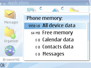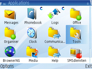 Andere applicaties die aanwezig zijn; zijn een device manager voor het ontvangen van service instellingen van providers of de werkgever en een PC Suite synchronisatie applicatie die bijhoudt wat de status is van de synchronisatie.