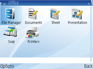 Office ondersteuning in Series 60 toestellen bestond de afgelopen jaren uit het meeleveren van QuickOffice op elk model dat Nokia leverde. Samsung doet het anders, die leveren een Picsel viewer mee op de D720. Maar Nokia is nu een totaal andere weg ingeslagen. In de nieuwe gebruikersinterface zit namelijk standaard Office ondersteuning. Drie applicaties genaamd Documents, Sheet en Presentation zijn vanaf nu standaard op de toestellen aanwezig. Naast deze applicaties zal ook QuickOffice nog meegeleverd worden. De reden waarom is niet bekend, maar zegt eigenlijk genoeg over de huidige status van de standaard applicaties. Deze zijn nog niet volledig uitgewerkt en niet op het niveau van QuickOffice. Anders zou men QuickOffice niet meer meeleveren.