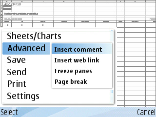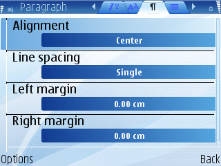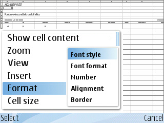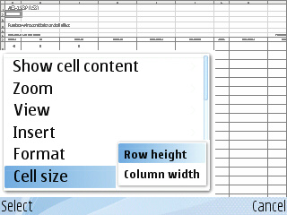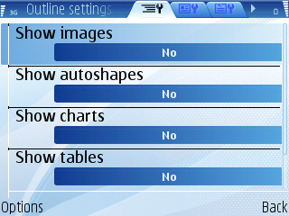 De applicaties hebben een groot aantal opties om de bestanden aan te passen en door te sturen. Door de screenshots te bekijken wordt duidelijk wat er al niet mogelijk is. Bij de Documents applicatie is de weergave over drie tabs verdeeld. Iedere tab heeft zijn eigen opties zoals het weergeven van een bepaald gedeelte van de pagina of het toevoegen en bewerken van de pagina. De Sheet applicatie ondersteunt grafieken, formules en andere opties. Het geheel werkt goed en simpel. De laatste applicatie is de Presentation applicatie die Powerpoint presentaties opent en weergeeft. Men kan de presentaties ook aanpassen. Altijd handig wanneer op het laatste moment een kleine wijziging gemaakt moet worden. Windows Mobile 5.0 heeft deze optie nog niet.