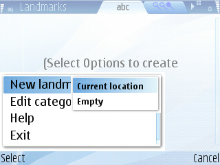 De landmark applicatie slaat waypoints en posities op die men in de navigator applicatie heeft bezocht of gaat bezoeken. Het is een planner waarmee van te voren de route bepaald kan worden.