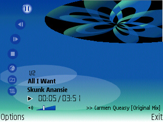 De versie op de nieuwere modellen is een verbetering van de speler die voor de N70, N90 en oudere modellen geleverd wordt. Gelukkig is deze versie nu goed toegepast op het toestel, past het goed in de diverse schermresoluties die ondersteund worden en wordt de speler getoond in het homescreen. Nadat een nummer is ingestart kan de speler in de achtergrond geplaatst worden en komt er een onderdeel bij in het homescreen waarop het huidige nummer zichtbaar is. Het begint nu eindelijk wat te worden met de media speler en het komt dichtbij wat Sony Ericsson biedt.