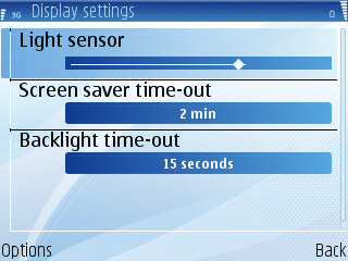 Het scherm van de Nokia E61 schakelt zich tijdens het bellen niet uit en toch jammer want het zou batterijtijd kunnen besparen. Bij oudere Symbian Series 60 toestellen is de screensaver in de vorm van een klok amper afleesbaar wanneer de verlichting van het scherm niet ingeschakeld is. Dat is eindelijk opgelost in Series 60 3rd Edition. De screensaver is namelijk groter geworden en veel beter af te lezen. Men bedekt nog niet het complete scherm, maar alles is beter dan de oude oplossing.