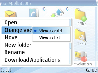 Wanneer men het menu zelf wil opstarten moet men op de menuknop drukken. In het menu vindt men een groot aantal iconen in roosterweergave waarachter een groot aantal programma's zitten. De manier waarop deze iconen zijn ingedeeld is een stuk verbeterd en diverse programma's zijn opgedeeld in redelijk aantal mappen. Het is mogelijk om de volgorde en mappen waarin diverse programma's staan aan te passen. De gebruiker kan zelfs de plek wijzigen waar een map staat. Naast het wijzigen van deze mappenvolgorde en de indeling daarvan is het mogelijk een andere soort van weergave van alle mappen te kiezen, genaamd de lijstweergave. Ook bij de lijstweergave is verplaatsing mogelijk.