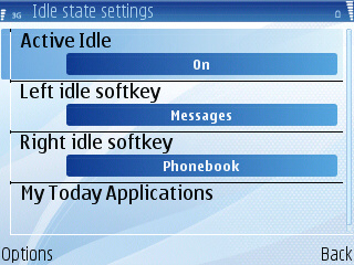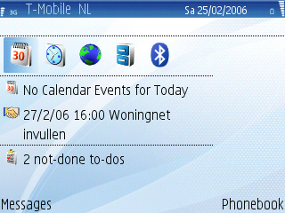 Wat de gebruiker verder op het beginscherm ziet is gelijk gebleven aan de Nokia N70, namelijk de notities voor de provider, de tijd, de Bluetooth, batterij, berichten en het ontvangst van het belsignaal. Aan de onderzijde van het scherm zijn twee links zichtbaar die door beide soft-keys gebruikt kunnen worden. Het gaat hier standaard om twee standaard links, maar deze kunnen zelf naar eigen wens ingesteld worden via het instellingen menu. Naast deze instellingen kan men de centrale 5-richtings bedieningstoets in de vijf richtingen ook een functie meegeven. Dit werkt alleen wanneer het homescreen niet ingeschakeld is.