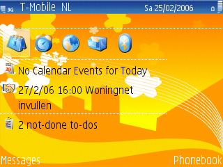 Het homescreen op het bureaublad van het toestel heeft een aantal kleine aanpassingen, die men kan doorvoeren. Men kan de vijf snelkoppelingen instellen en het homescreen aan en uit zetten. Allemaal wat karig. Hopelijk is het mogelijk wat aanpassingen te doen en wat eigen inzichten te realiseren met een nieuwe thema creator.