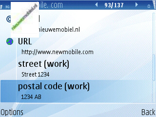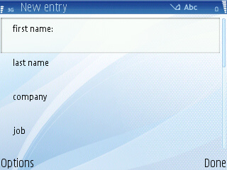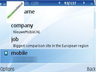 Per contactpersoon kan men standaard een redelijk aantal punten met data toevoegen: Voornaam, Achternaam, Bedrijf, Functie, Telefoonnummer, Mobielnummer, Faxnummer, Emailadres. Mocht men dan meer data willen toevoegen dan kan dit via "gegeven toevoegen" en kan men diverse extra's gegevens toevoegen zoals: Telefoonnummers, Mobiele nummers, Fax nummers, Adressen, Emailadressen, URL's, de verjaardag van een contactpersoon en een notitie. Het is nog niet zo uitgebreid als de Orange SPV C600, maar voor een smartphone is het niet anders dan zeer netjes. Deze optie is exact hetzelfde gebleven met andere Series 60 toestellen.