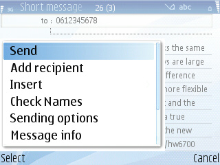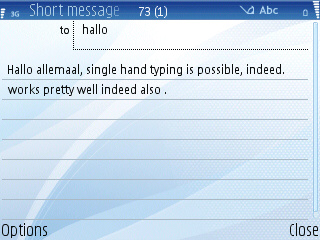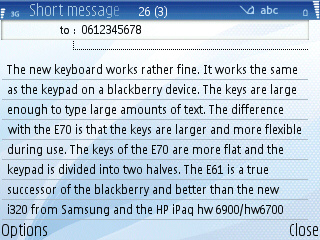 Het invoeren gaat verder op de E61 goed en naar behoren. De toetsen zitten wel wat los, maar qua snelheid ontlopen beide modellen elkaar niet veel. In tegenstelling tot bijvoorbeeld de T-mobile MDA Vario of Qtek 9100 wordt er netjes in het scherm aangegeven welke invoermodus gekozen is. De interface heeft namelijk daarvoor een indicatie. Deze is niet anders dan bij andere modellen zonder volledig toetsenbord, maar voldoet ook tijdens het invoeren met de E61.