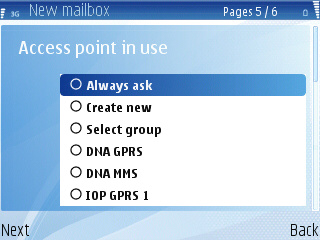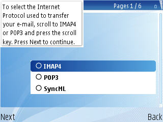 Een nieuw onderdeel in het messaging gedeelte is het invoeren van email accounts. Vroeger werkte dat nogal omslachtig, maar vanaf nu is dit opgelost door een simpele wizard die doorlopen moet worden. Alle opties en invoervelden worden aangegeven en aan het einde heeft de gebruiker heel eenvoudig zijn instellingen in het toestel zitten. Absoluut een verbetering ten opzichte van de oude situatie. In de toekomst zullen zelfs speciale provider gestuurde systemen en programma's komen die het toestel volledig zullen instellen. Men hoeft dan nooit meer zelf de instellingen te bepalen, te kiezen of te downloaden bij de provider. Het toestel maakt zelf contact met de provider, download de data en zal het toestel compleet instellen voordat u het menu of een andere functie in het menu gezien heeft. Het systeem is in een simpelere vorm al aanwezig in provider-gelockte modellen als bijvoorbeeld een T-mobile MDA Pro. In de toekomst zal het op alle modellen werken.