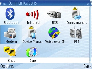 Op het toestel zit ook een modem, die gebruikt kan worden voor een draadloze inbel- of GPRS verbinding tussen een laptop en een netwerk. Men kan de verbinding met de PC, laptop of ander netwerk via Bluetooth, datakabel of infraroodpoort laten lopen.