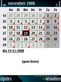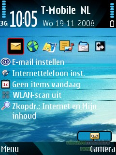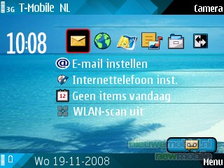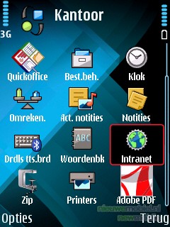 Door op de linker selectietoets of de homesneltoets te drukken wordt het menu geopend. De Nokia E66 is voorzien van Symbian S60 3rd Edition Feature Pack 1, dit betekent dat het menu er iets anders uitziet dan op de doorsnee telefoons. Wanneer je het menu opent komen er naast Web, Logboek en Download acht mapjes te voorschijn die elk een aantal toepassingen huisvesten. Variërend van Communicatie tot Instrumenten en Kantoor tot GPS. Symbian stelt de gebruiker tevens in staat om het menu volledig naar zijn of haar persoonlijke wensen in te stellen, inclusief de functietoetsen. Helaas ziet het menu er wel verschrikkelijk saai en eenvoudig uit met veel grijs en zonder animaties.