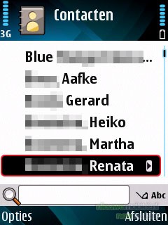 Om een contactpersoon zo snel mogelijk te kunnen bellen kan in het startscherm een letter getypt worden waarna het toestel automatisch de contacten toont met die letter in de voor- of achternaam. Afhankelijk van de voorkeur van de gebruiker kunnen contacten op de SIM-kaart, in de telefoon of allebei tegelijk getoond worden. Contacten kunnen gesorteerd worden volgens voor- of achternaam en doorzocht worden met of zonder voorspellen.