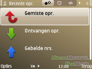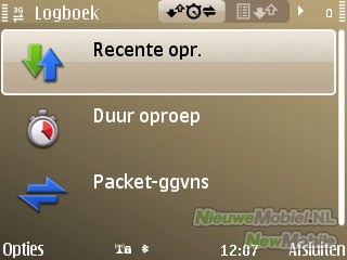 Het logboek is ingedeeld in recente oproepen, duur oproepen en packet-gegevens. Hier kunnen onder andere gemiste oproepen, duur van uitgaande oproepen en ontvangen gegevens geraadpleegd worden. De tellers kunnen ook weer op nul gezet worden. Binnenkomende oproepen kunnen snel gedempt worden door het toestel met het beeldscherm naar beneden te draaien.