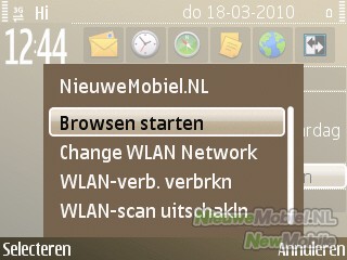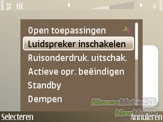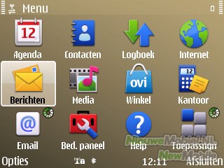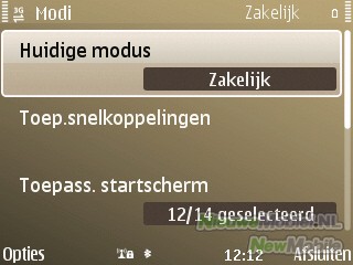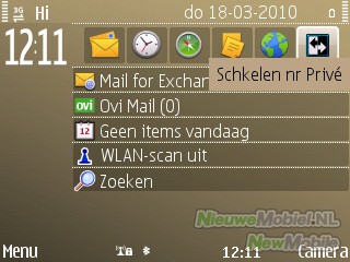 De E72 draait onder Symbian Series 60 en dus is het menu een bekend plaatje dat wordt geopend met de linker selectietoets of de hometoets. Bij nader inspectie blijkt echter al snel dat het menu toch iets meer eyecandy biedt dan we tot nu toe gewend waren. Feature Pack 2 heeft ervoor gezorgd dat er nu onder andere mooie overgangsanimaties in het menu zitten. Verder is het nog steeds mogelijk om te schakelen tussen een zakelijke en privémodus in het startscherm die beiden helemaal door de gebruiker kunnen worden aangepast.